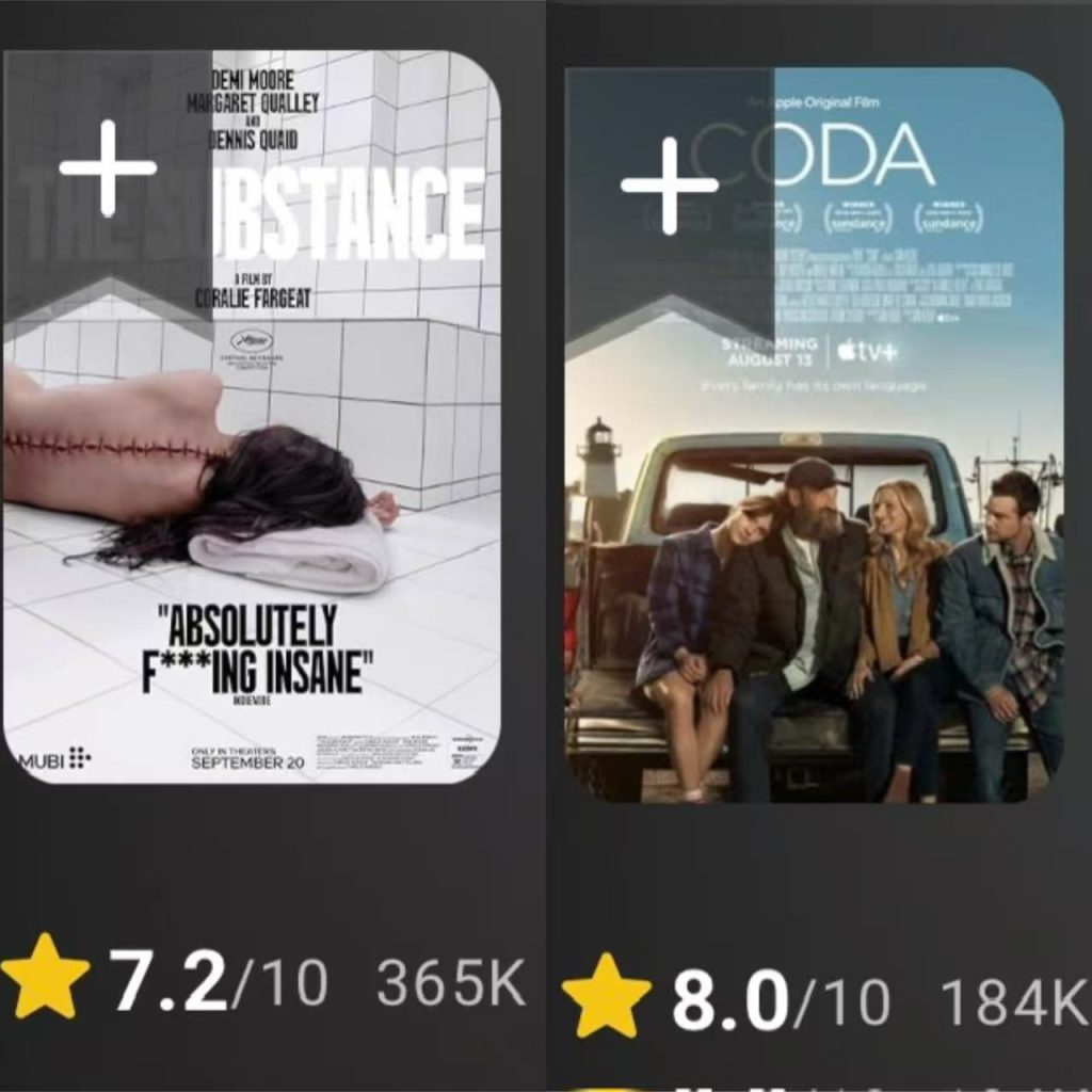 On the bright side, we also have more excellent works, such as CODA, which focuses on the lives of girls in families with disabilities, and The Substance, which directly confronts the unequal pressures women face in today’s workplace.